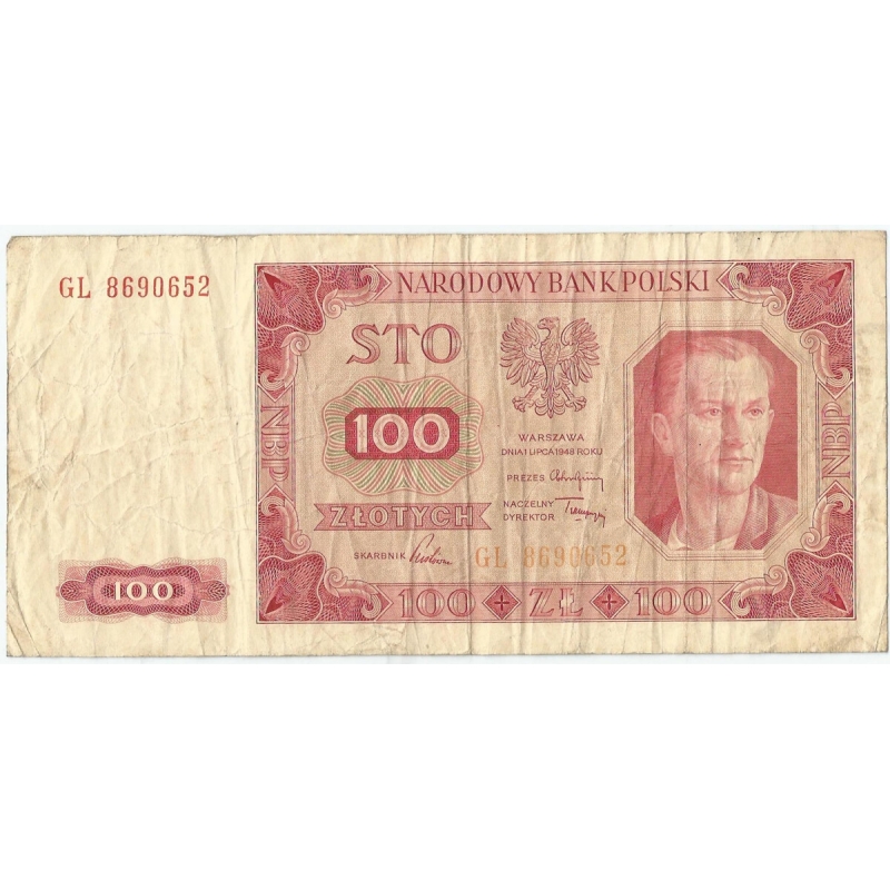 Banknot widoczny na załączonych zdjęciach (real photos). Rzadsza seria (brak ramki wokół liczby sto na środku awersu)