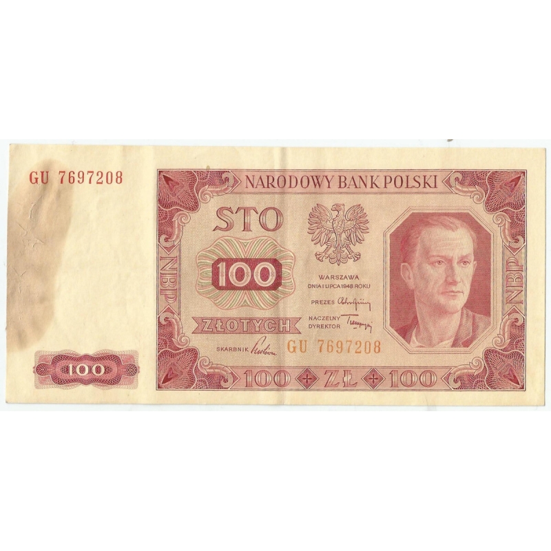 Banknot widoczny na załączonych zdjęciach (real photos). Rzadsza seria (brak ramki wokół liczby sto na środku awersu)