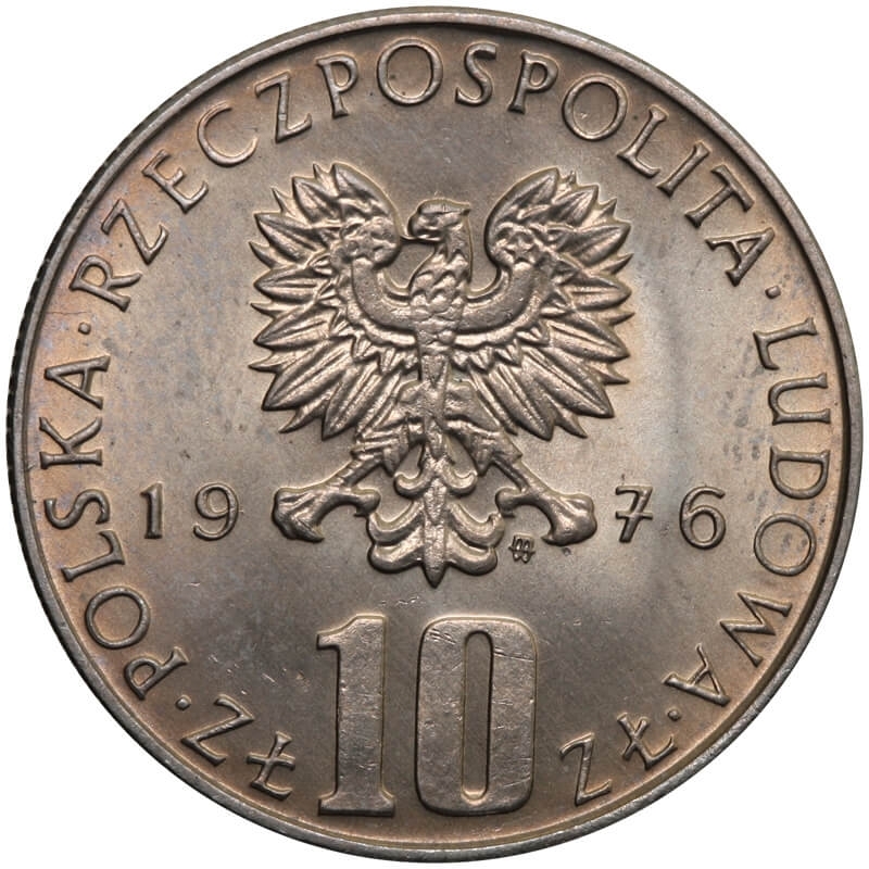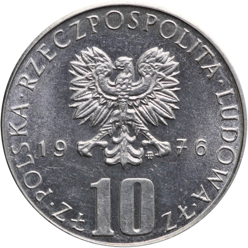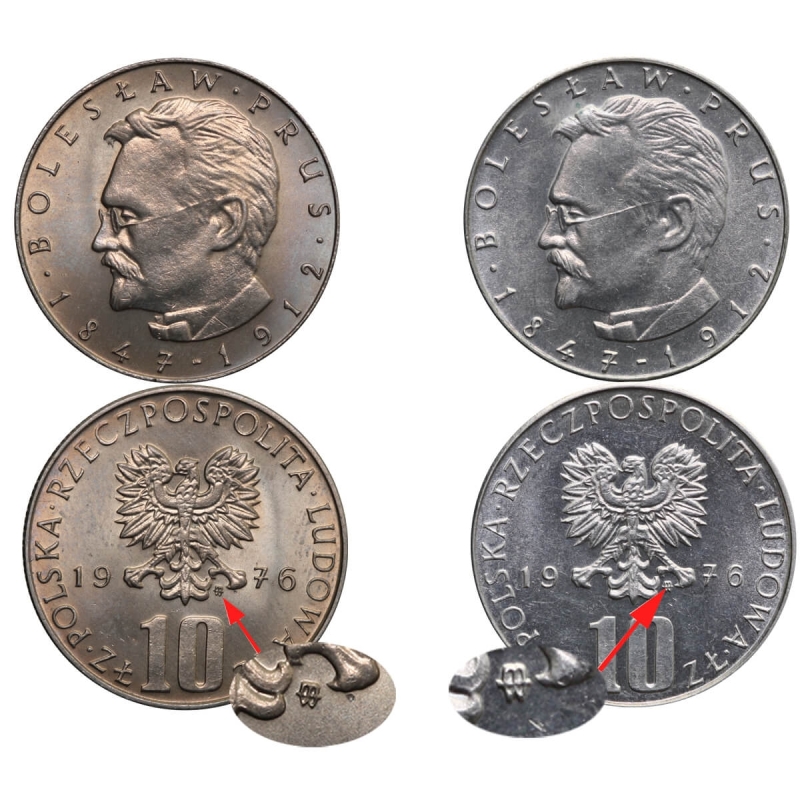 Zestaw dwóch monet o nominale 10 złotych z 1976 roku z wizerunkiem Bolesława Prusa.