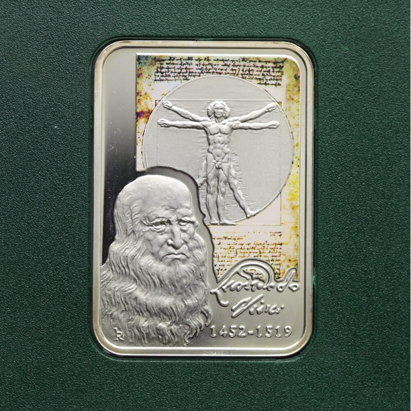 Srebrna moneta kolekcjonerska Principat d’Andorra poświęcona Leonardowi da Vinci – jednemu z najwybitniejszych twórców renesansu. Emisja nawiązuje do jego najsłynniejszych dzieł oraz dorobku artystyczno-naukowego.