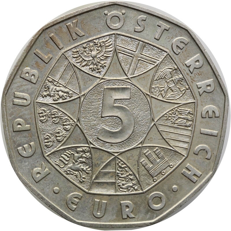 Austria 5 euro, 2007 800-lecie miasta Mariazell, srebro