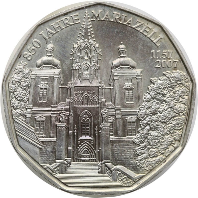 Austria 5 euro, 2007 800-lecie miasta Mariazell, srebro