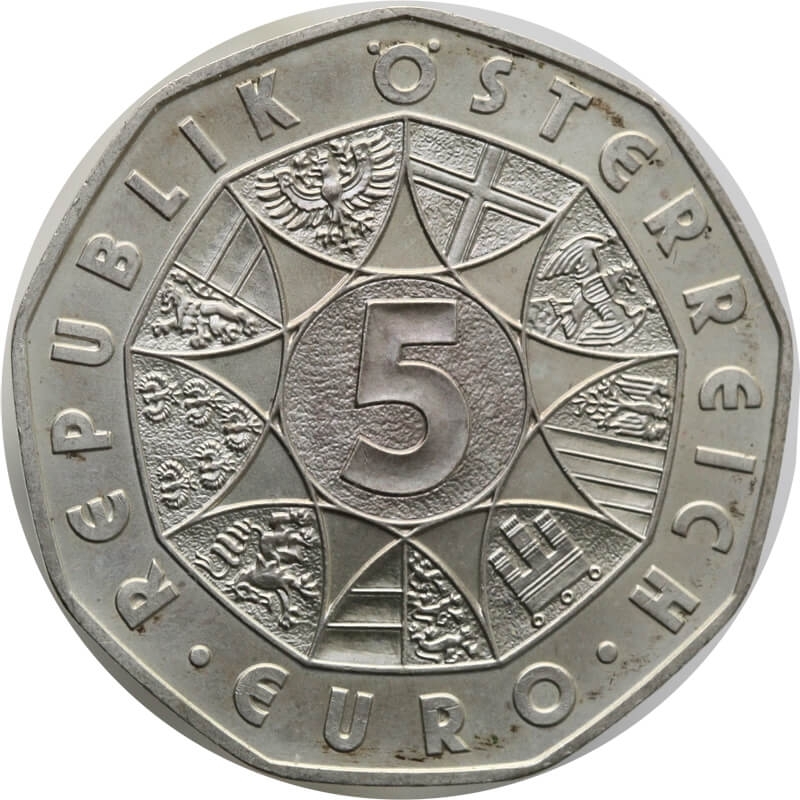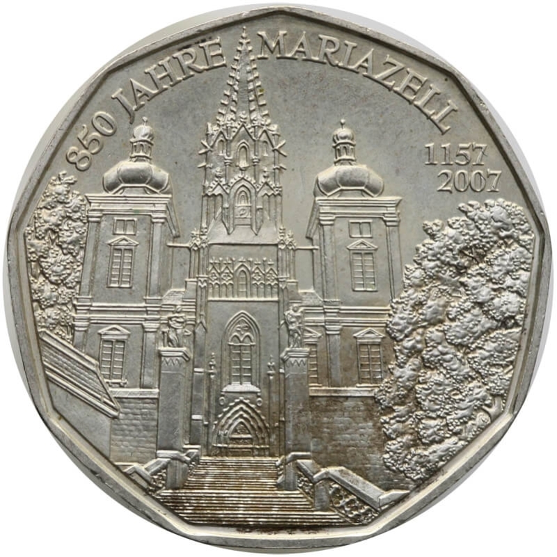 Austria 5 euro, 2007 800-lecie miasta Mariazell, srebro