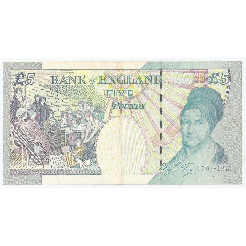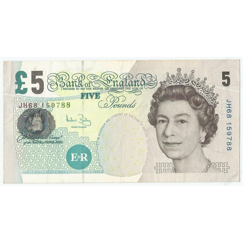 Banknot 5 funtów (Bank of England), papierowa emisja wycofana z obiegu.