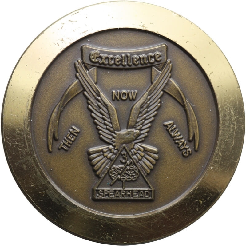 Oficjalny medal dowódcy (Command Coin) legendarnej 3. Dywizji Pancernej (3rd Armored Division), znanej pod przydonkiem „Spearhead”. Przedmiot o wyjątkowym znaczeniu kolekcjonerskim, stanowiący bezpośrednie uzupełnienie personalnego coina dowódcy dywizji.