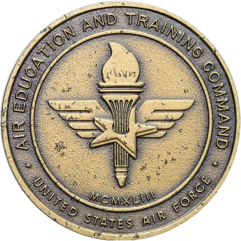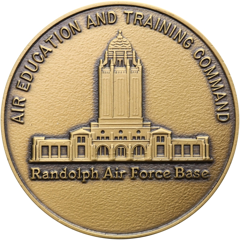 - Awers: W centralnym polu przedstawienie reliefowe budynku nr 100 w bazie Randolph (Teksas), znanego jako „Taj Mahal” – historycznej siedziby dowództwa szkoleniowego. W otoku napis: AIR EDUCATION AND TRAINING COMMAND / RANDOLPH AIR FORCE BASE.