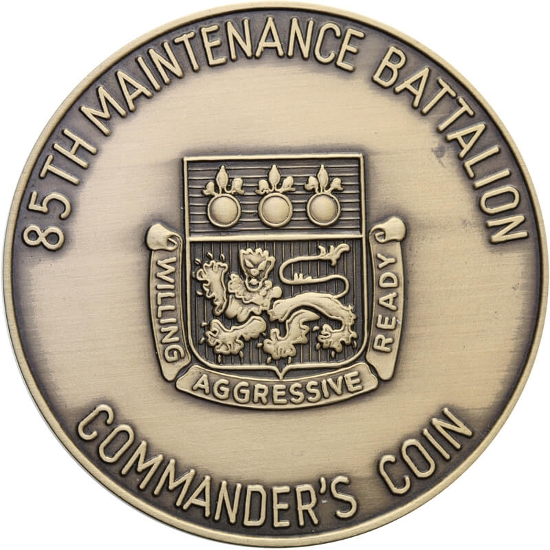 Moneta dowódcy 85. Batalionu Remontowego (85th Maintenance Battalion), jednostki logistycznej armii USA, która historycznie stacjonowała m.in. w Niemczech (Hanau/Kaiserslautern) i brała udział w operacjach wspierających NATO w Europie.