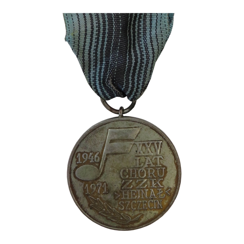 Medal okolicznościowy wydany z okazji 25-lecia działalności Chóru Związku Zawodowego Kolejarzy „Hejnał” w Szczecinie, działającego w latach 1946–1971.