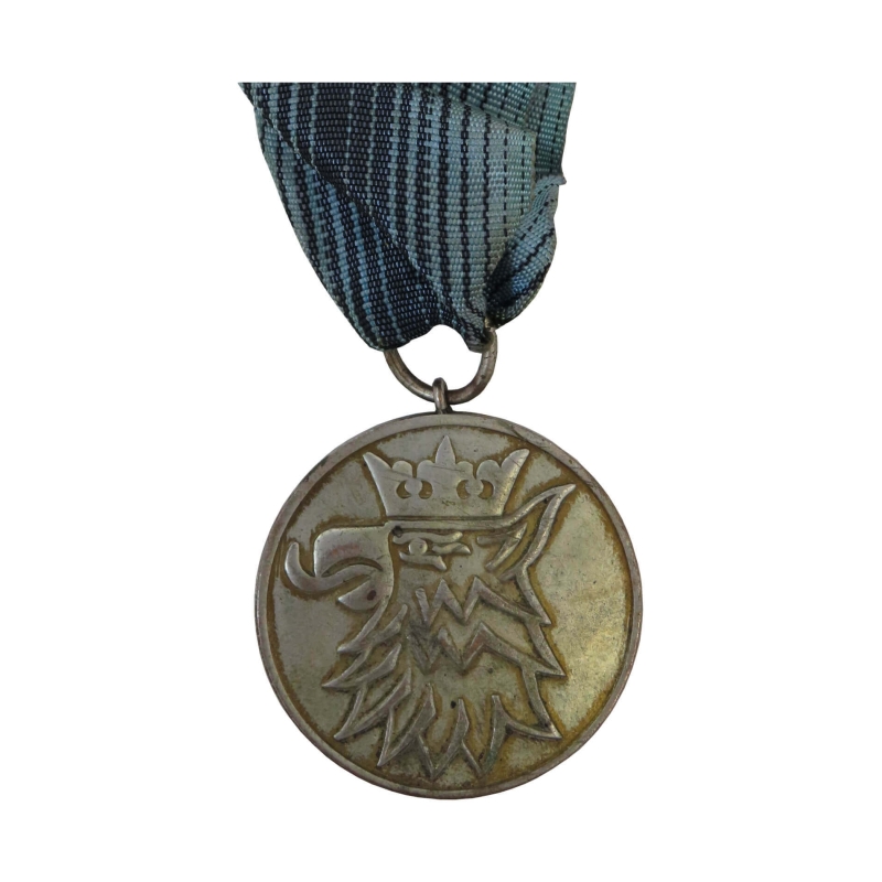 Medal zachowany z oryginalną wstęgą, stan autentyczny, naturalna patyna.