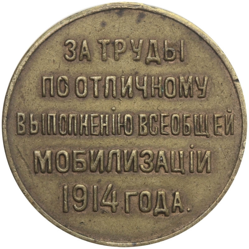 Medal rosyjski z 1914 roku, związany z powszechną mobilizacją na początku I wojny światowej.