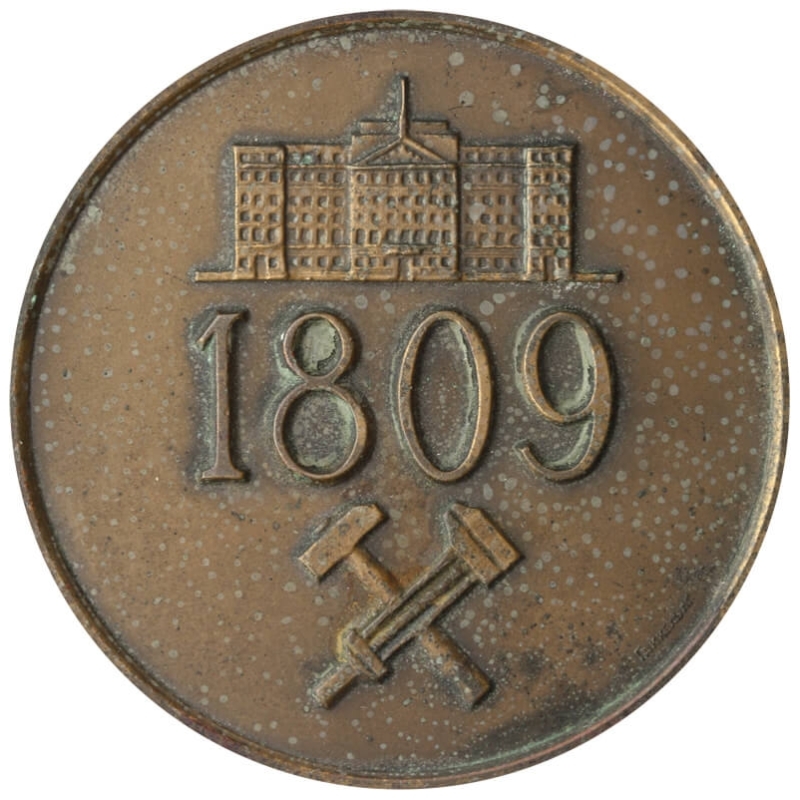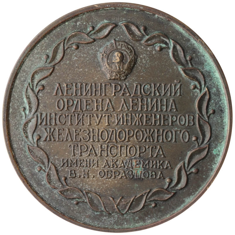 Medal pamiątkowy z brązu wydany przez Leningradzki Instytut Inżynierów Transportu Kolejowego im. W.N. Obrazcowa. Awers przedstawia budynek uczelni, datę 1809 oraz symbole górniczo-hutnicze; na rewersie umieszczono nazwę instytutu w wieńcu laurowym z odznaką Lenina. Egzemplarz o wyraźnej patynie, waga 155 g.