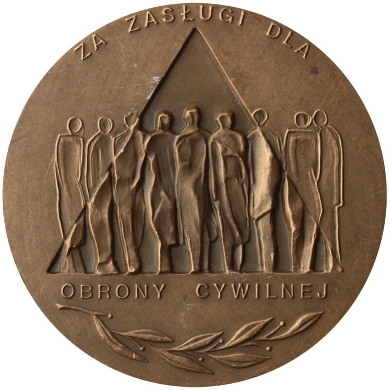 Medal pamiątkowy wydany przez Miejski Inspektorat Obrony Cywilnej w Warszawie, przyznawany za zasługi dla Obrony Cywilnej. Kompozycja medalu nawiązuje do symboliki ochrony ludności oraz obrony miasta.