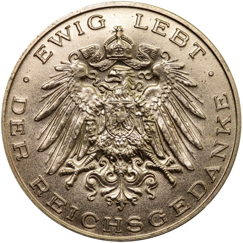 Orzeł cesarski z koroną oraz tarczą na piersi. W otoku napisy: „DEUTSCHES REICH” oraz „EWIG LEBT DER REICHSGEDANKE”.
