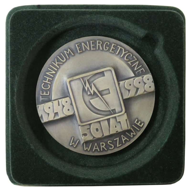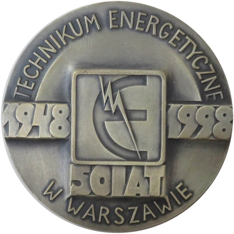 Medal jubileuszowy wydany z okazji 50-lecia Technikum Energetycznego im. Stanisława Staszica w Warszawie (1948–1998). Dwustronny medal okolicznościowy o tematyce szkolnictwa technicznego i energetyki.
