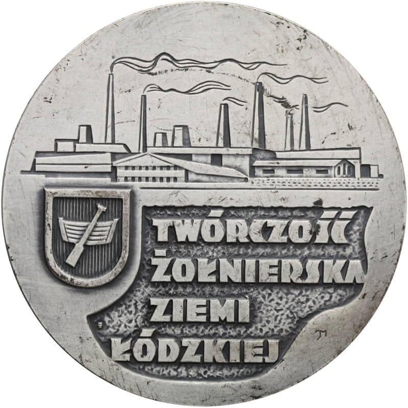 Plakieta okolicznościowa z okresu PRL pt. „Twórczość Żołnierska Ziemi Łódzkiej”. Dwustronna, odlewana, o tematyce wojskowo-regionalnej (Łódź / Ziemia Łódzka).