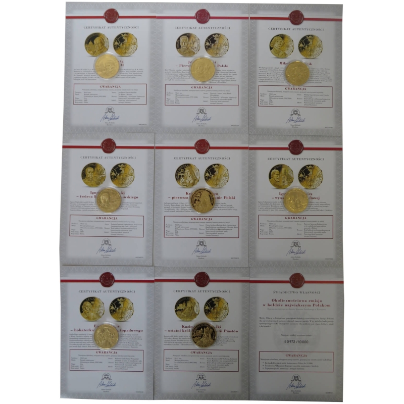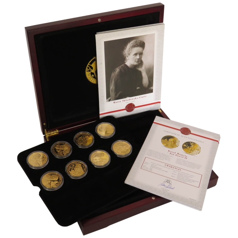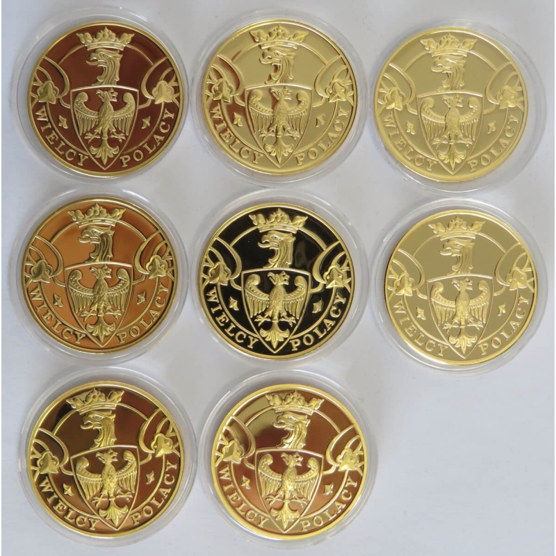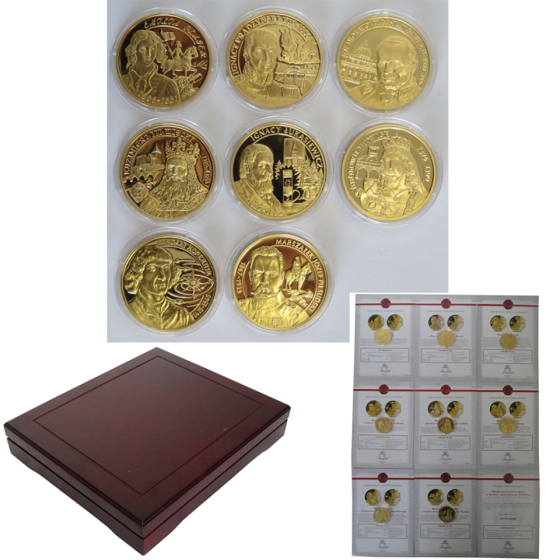 Zestaw 8 medali przestawiający sylwetki wielkich Polaków: