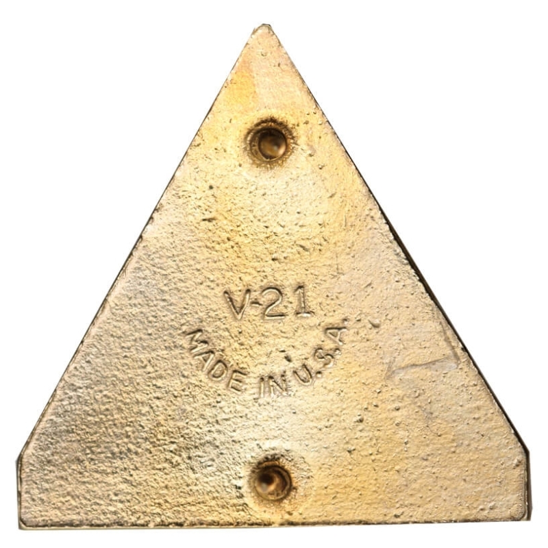Rewers: Powierzchnia metalowa, chropowata (tzw. pebble finish). Widoczne wyraźne bicie producenta: kod V-21 (Vanguard Industries) oraz napis MADE IN U.S.A. Na osi poziomej dwa sztyfty montażowe (piny).