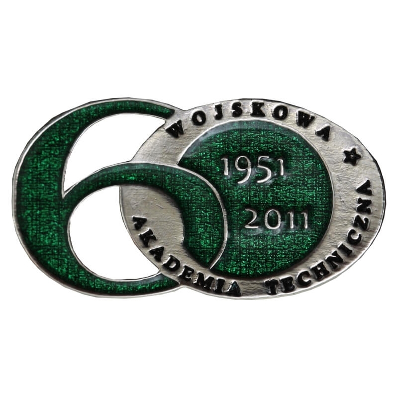 Oryginalna odznaka jubileuszowa wydana z okazji 60-lecia Wojskowej Akademii Technicznej im. Jarosława Dąbrowskiego w Warszawie (1951–2011).