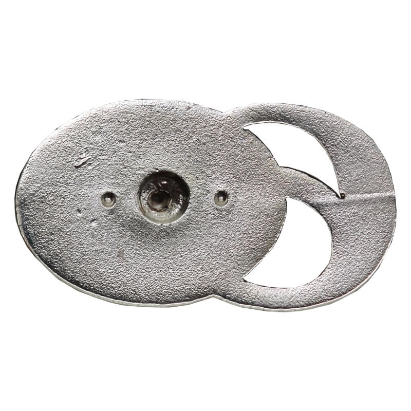 Rewers: Powierzchnia srebrzysta, chropowata. Widoczne centralne wgłębienie na sztyft montażowy oraz dwa mniejsze bolce stabilizujące odznakę na mundurze.