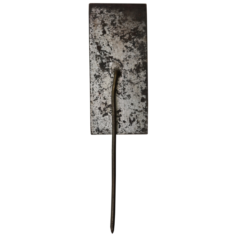 Wykonanie: Odznaka bita w metalu, patynowana. Na rewersie znajduje się pionowa szpila (igła), co jest charakterystyczne dla starszych typów odznak wpinanych bezpośrednio w klapę munduru lub garnituru.