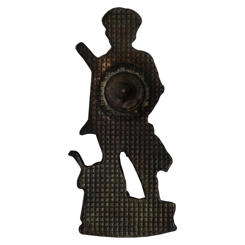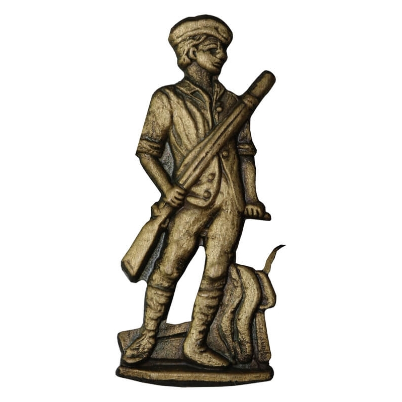 Metalowa oznaka pamiątkowa przedstawiająca Minutemana – symbol amerykańskiej milicji obywatelskiej z okresu wojny o niepodległość (XVIII w.). Postać ukazana jest w klasycznej pozie: żołnierz-rolnik z karabinem muszkietowym w dłoni, stojący przy pługu. Przedmiot stanowi osobistą pamiątkę po generale, prawdopodobnie otrzymaną podczas współpracy z amerykańskimi siłami zbrojnymi.