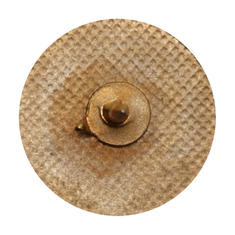 Rewers: Powierzchnia o regularnej, fakturowanej strukturze. Wyposażona w pojedynczy pin montażowy z zapięciem zaciskowym typu butterfly (motylkowe). Brak sygnatur producenta, co jest typowe dla odznak korporacyjnych tego typu.
