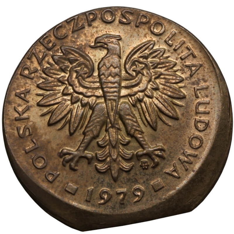 Część obrazu zarówno awersu, jak i rewersu znajduje się poza obrysem krążka. Efekt rozlania: Metal pod wpływem uderzenia stempla "wypłynął" w stronę braku oporu pierścienia, tworząc charakterystyczny, eliptyczny kształt i gładką, zaokrągloną krawędź (brak rantu).