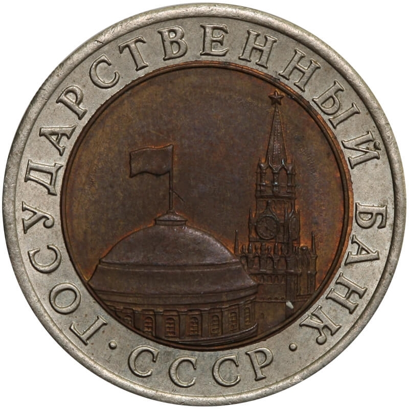 Bimetaliczna moneta o nominale 50 rubli z 1993 roku. Egzemplarz pochodzi z serii „Czerwona Księga” – cyklu poświęconego gatunkom zwierząt zagrożonych wyginięciem.