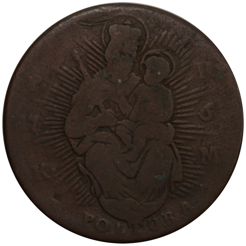 Rewers: Wizerunek Madonny z Dzieciątkiem (Patrona Hungariae) siedzącej na obłoku w promienistej glorii. Po bokach rozdzielony znak mennicy „K” – „M”. Na dole napis „POLTURA”, a nad nim rozdzielona data „17 – 61”.
