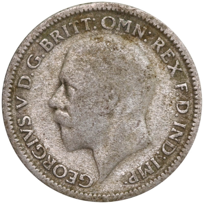 Awers: Portret króla Jerzego V zwrócony w lewo. W otoku napis: GEORGIVS V D. G. BRITT: OMN: REX F. D. IND: IMP: (Jerzy V, z Bożej Łaski Król Brytyjczyków, Obrońca Wiary, Cesarz Indii).