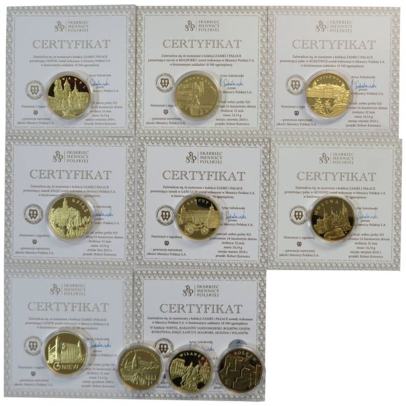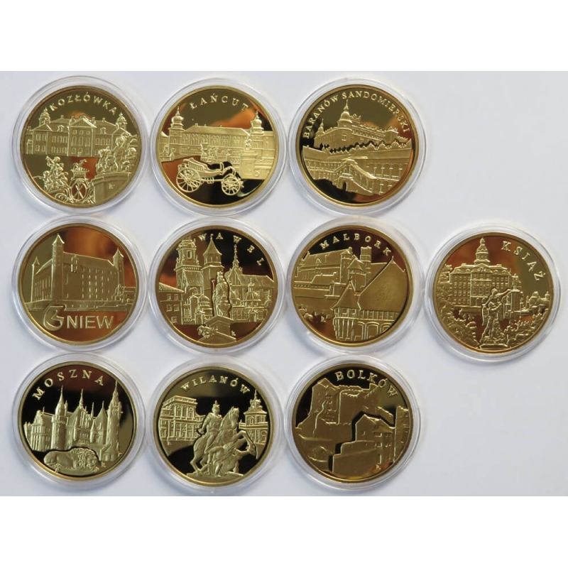 Ekskluzywny zestaw kolekcjonerski „Zamki i Pałace” wydany przez Skarbiec Mennicy Polskiej. Kolekcja prezentuje najważniejsze i najbardziej rozpoznawalne rezydencje oraz warownie historyczne z terenu Polski, ukazane na efektownych medalach o lustrzanym tle.