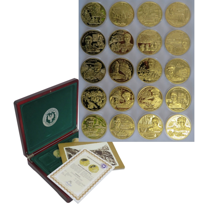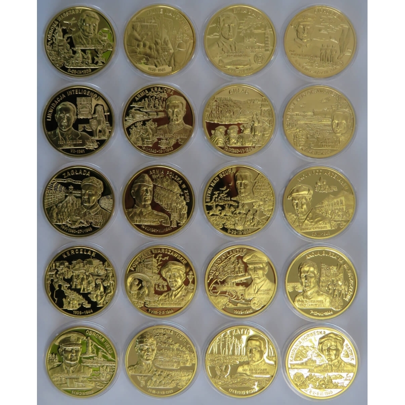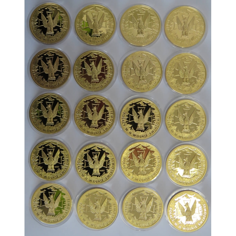 Zestaw 20 medali przestawiający udział Polaków w 2 wojnie światowej: