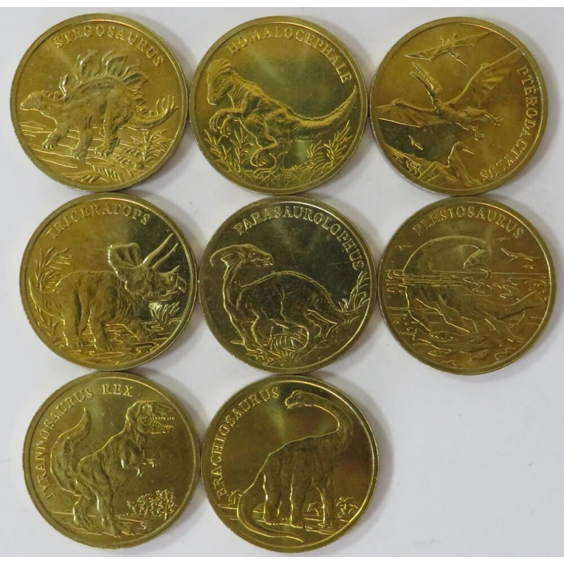 W skład zestawu wchodzi 8 numizmatów w dedykowanej sakiewce: